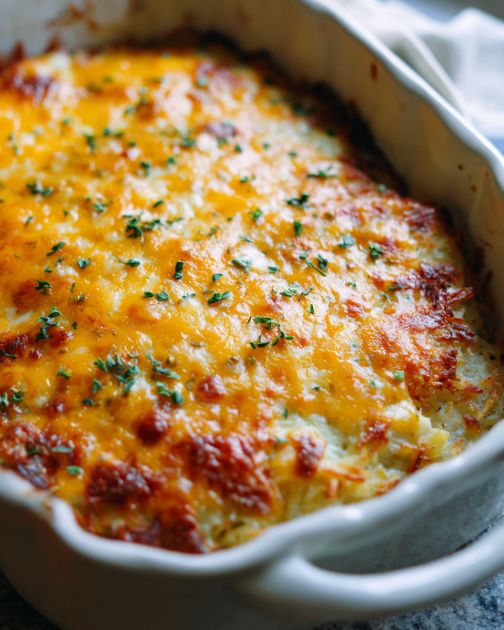 Tento kastról z hnedých zemiakov je super všestranný a hodí sa takmer ku každému klasickému hlavnému jedlu. Na spoločný raňajkový obrad alebo sviatočnú hostinu ho skombinujte s pečenou šunkou, pečeným moriakom alebo sekanou a jednoduchým zeleninovým šalátom. Počas rušných pracovných dní ho podávam s kuracím mäsom z grilu a dusenou zelenou fazuľkou alebo so šalátovou sadou v sáčku, aby ste si to uľahčili. Slúži aj ako brunch – pridajte si miešané vajíčka, slaninu alebo klobásy a trochu čerstvého ovocia. Ak chystáte jesť pre viac ľudí, položte ho vedľa košíka s žemľami alebo sušienkami, aby si každý mohol vytvoriť svoj vlastný útulný tanier.