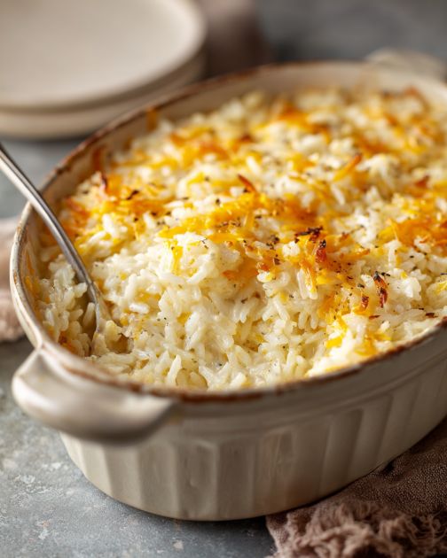 Tento zapekaný kostolný kastról so syrom a ryžou je ten typ jednoduchého a útulného jedla, ktoré nájdete takmer na každom stole v malom meste na Stredozápade. Má len tri ingrediencie, ale chutí ako niečo, čo by stará mama priniesla vo svojom obľúbenom zapekacom pekáči, ešte horúcom a zabalenom v kuchynskej utierke. Je to skvelý recept na rušné večery, keď si chcete na stôl dať niečo teplé a sýte bez veľkých starostí, alebo na tie chvíle, keď potrebujete spoľahlivé jedlo na spoločné večere v kostole, pohrebné obedy alebo rodinné stretnutia. Je krémový, syrový a šetrný k žalúdku – ideálny pre deti, starších ľudí a každého, kto si len chce vychutnať upokojujúci sústo domova.