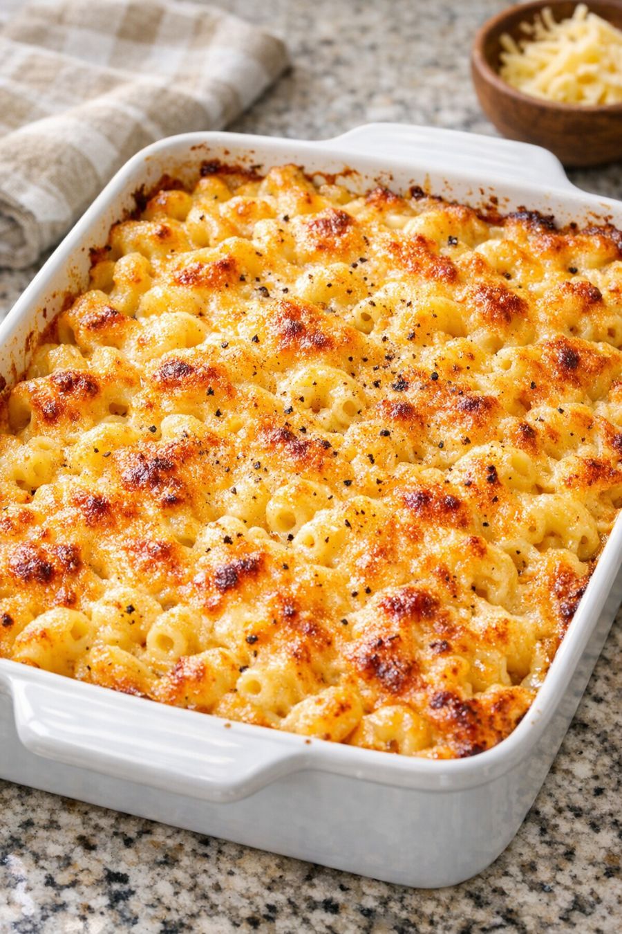 Tieto 5-ingrediencie pečené makaróny so syrom sú presne ten typ receptu, na ktorý sa spolieham po dlhom pracovnom dni, keď stále chcem niečo útulné a domáce, ale môj mozog už oficiálne nerobí žiadne rozhodnutia. Makaróny so syrom boli vždy jednou z tých základných jedál Stredozápadu, ktoré nám prinášajú pohodlie – spoločné večere, rodinné večere, snehové dni, proste všetko. Táto verzia vynecháva zložité zápražky a zložité kroky a ide rovno k tomu, čo naozaj chceme: krémové, syrové cestoviny so zlatistým, bublinkovým povrchom. Sú ideálne na rušné večery, neformálne stretnutia alebo večery, keď si len potrebujete dať veľkú misu niečoho teplého a známeho bez toho, aby ste si pri tom zničili kuchyňu.